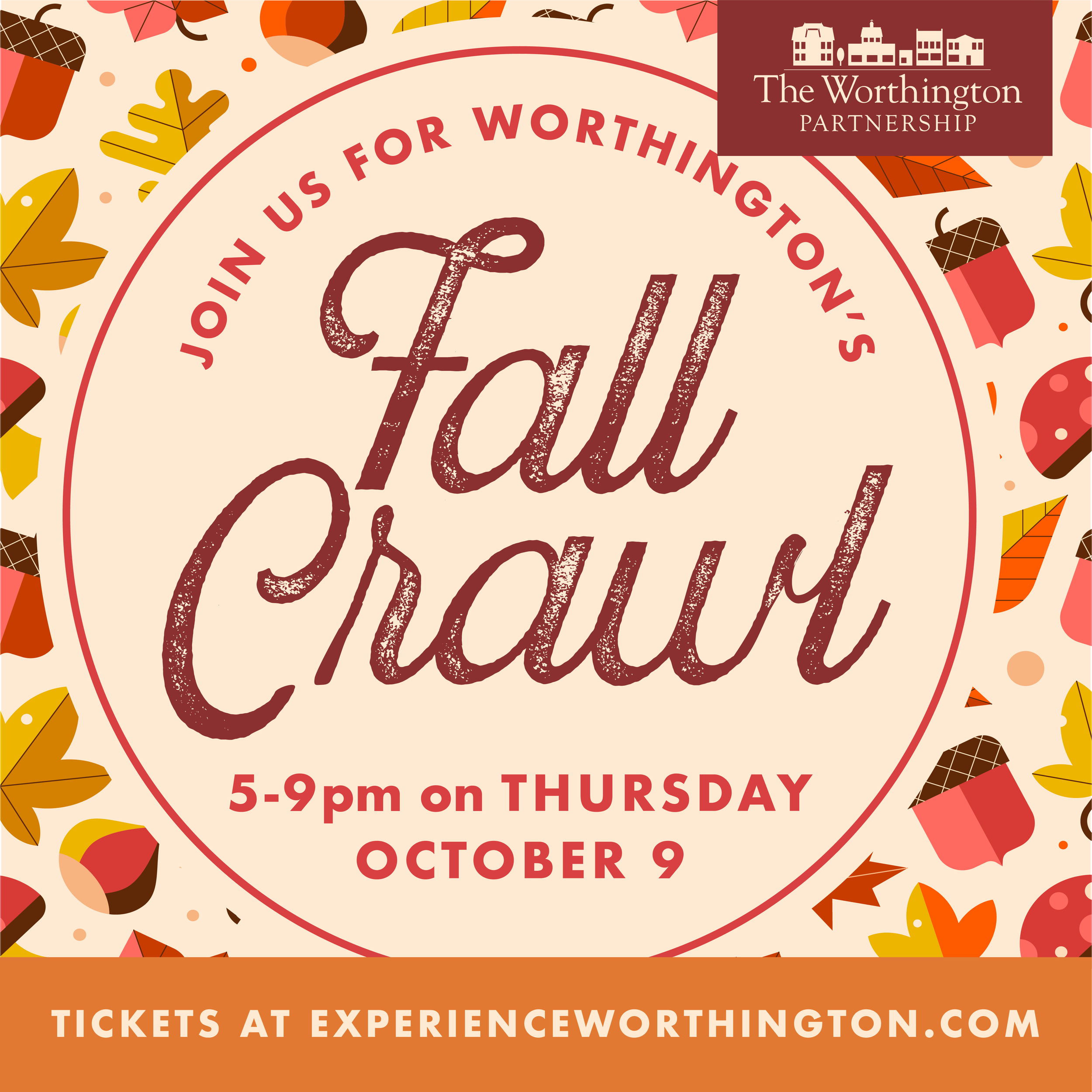 Fall is almost here and you know what that means.....it's time for the Worthington Fall Crawl! Your ticket to this popular event gets you some delicious fall treats from over 15 of our Old Worthington Merchants - think spiced apple cider, pumpkin cookies, pumpkin facials, and more! It will be a fall-themed stroll through our beautiful historic business district.