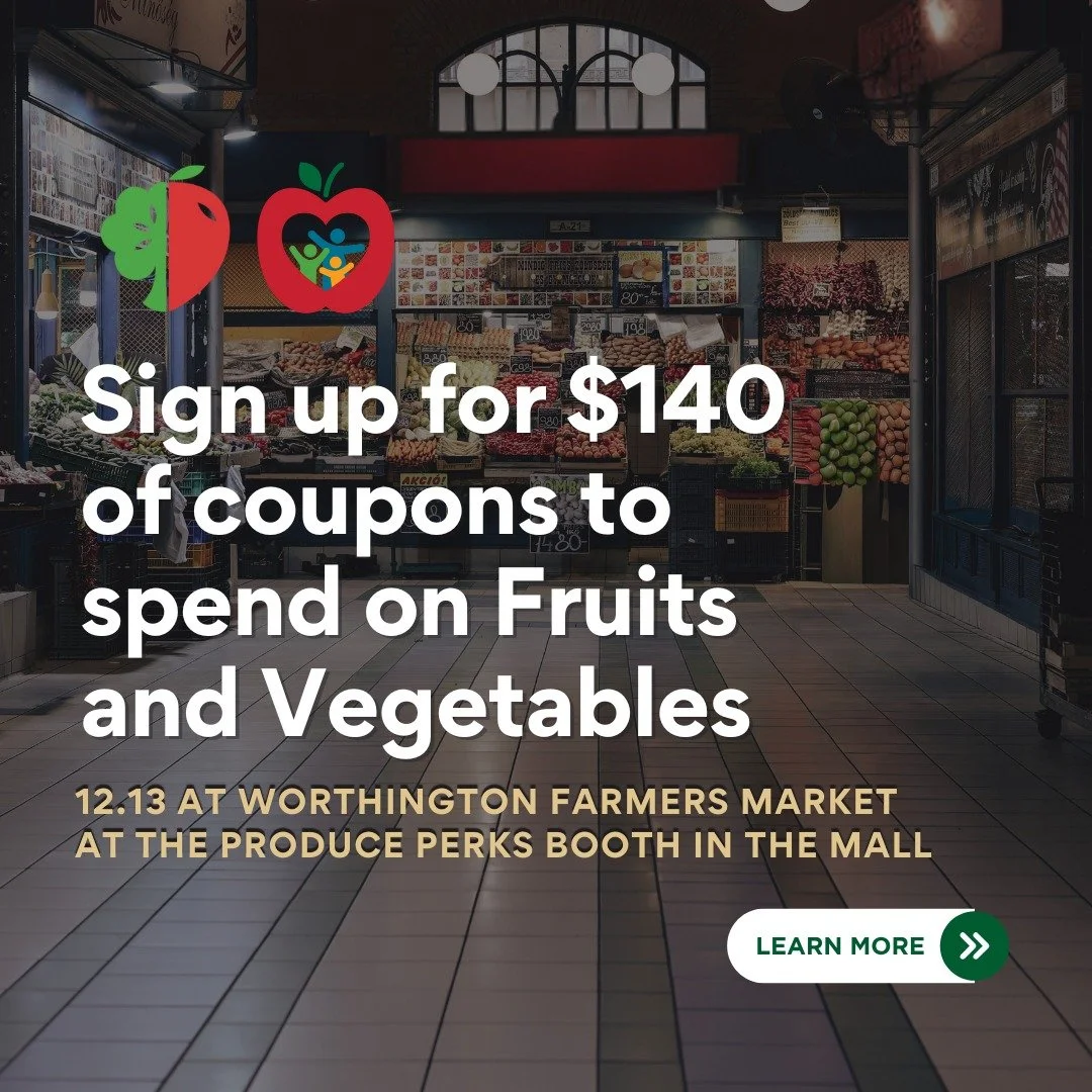 We accept EBT, credit cards, cash and Market tokens and gift certificates! EBT shoppers, stop by the Market information booth (near Graeter's ice cream at the corner of High Street and E. New England Avenue) to swipe your EBT card for tokens that can be used to purchase EBT-eligible items. When you swipe your EBT card with us, we'll match up to $25/day in Produce Perks that you can spend on fresh fruit and vegetables.
