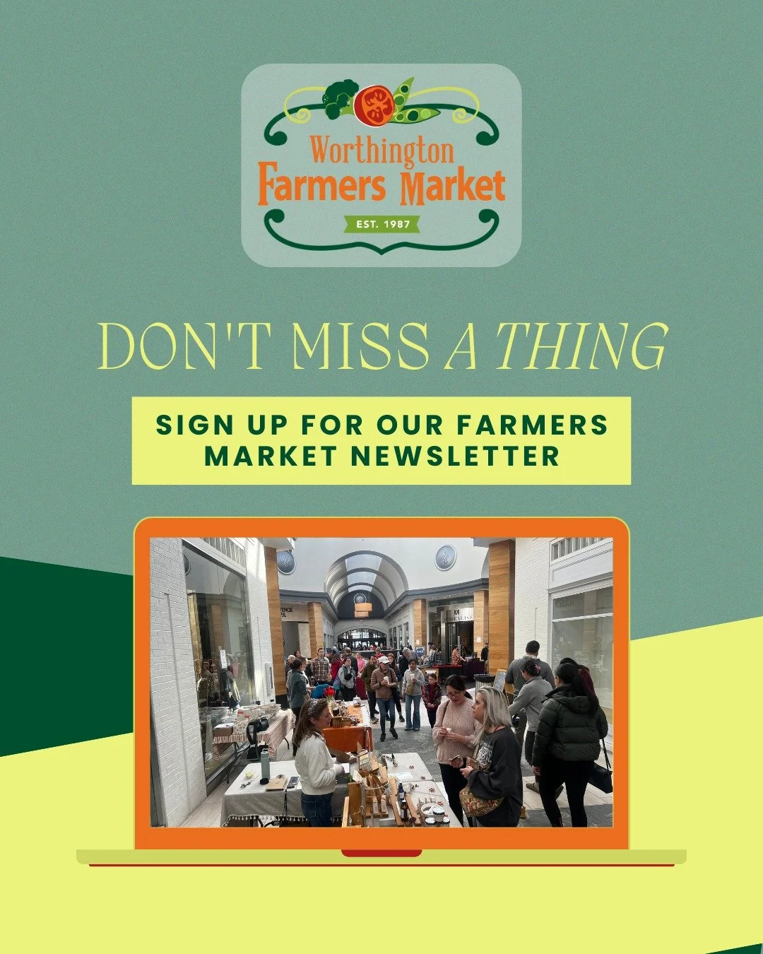 Organizations with a primary focus aligned with the Worthington Farmers Market will be considered for participation. Specifically, we ask that partnering organizations have their major focus in at least one of these areas:
